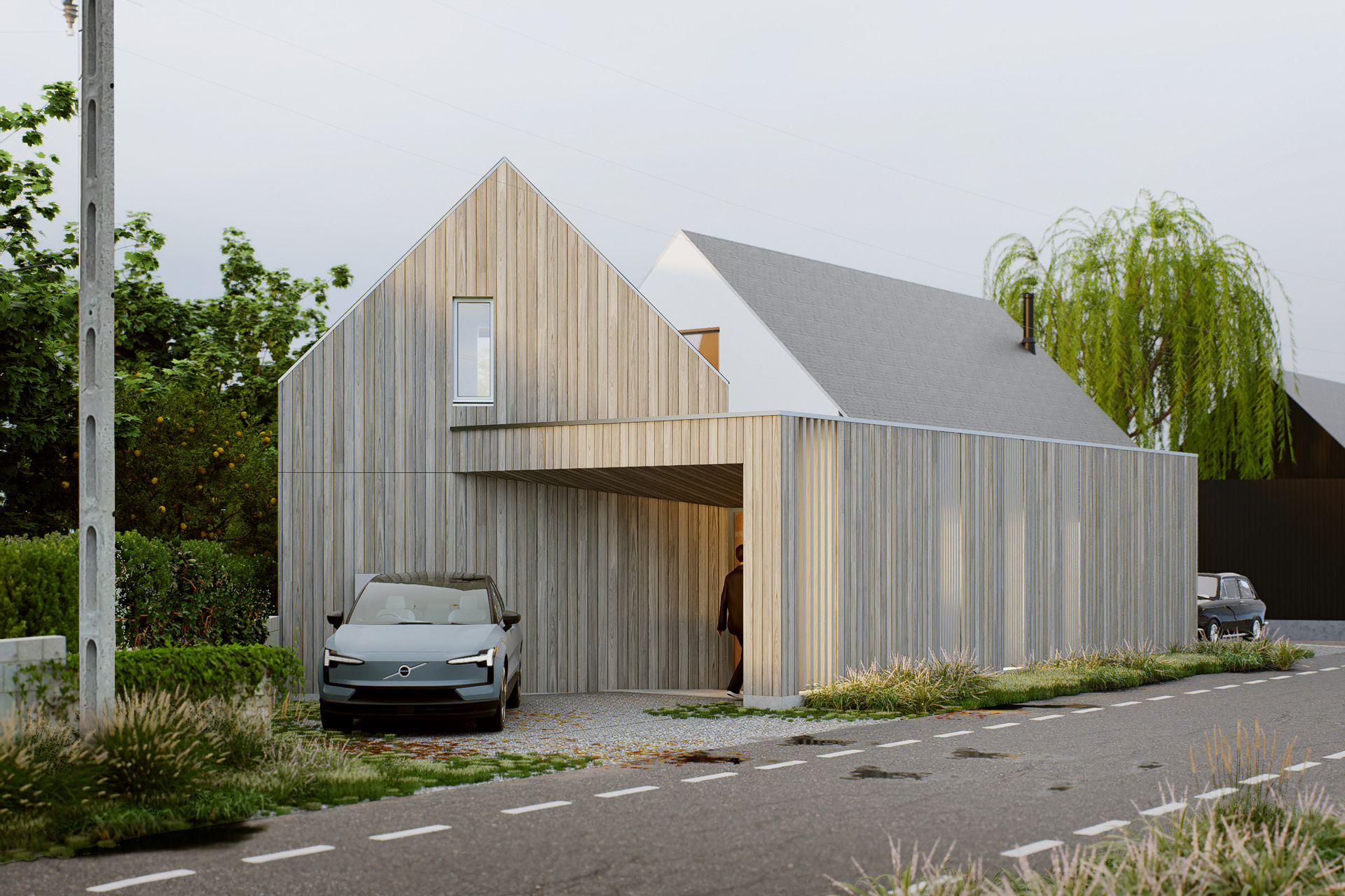 La maison existante est implantée sur un terrain à la forme difficile, rebus d'une division parcellaire aléatoire. Il s'agit d'une maison que nous avions conçue en 2021 pour un budget réduit (Voir la page projet