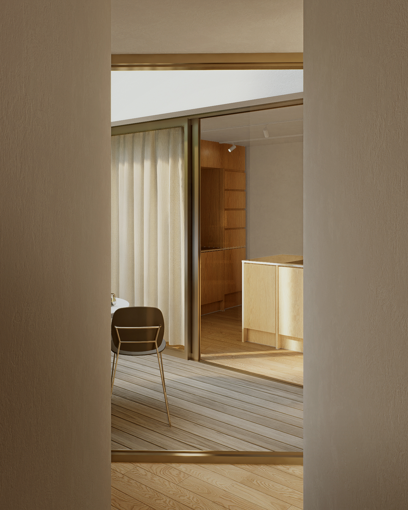 ). Imaginée pour évoluer et tirer tous les avantages de cette configuration particulière, il s'agit ici de la deuxième phase de vie de cette maison qui demande à s'agrandir. Il s'agit donc de développer un projet d'extension pour ajouter des usages complémentaires en adéquation avec l'évolution des besoins des propriétaires, à savoir, 2 chambres et un atelier. De la même manière que nous avions anticipé l'évolution des besoins de la maison, nous avons ici étudié plusieurs scénarios afin d'offrir en plus du cahier des charges une flexibilité d'usages. Dans le projet initial, nous avions prévu certaines conditions pour faciliter la réalisation de cette future partie de la construction : la proximité immédiate des réseaux, le mur ossature bois facile à tomber et la poutre béton intégrée dans le pignon. L'idée, désormais, est donc d'exploiter cette partie ingrate du terrain pour valoriser la construction existante et consolider leur patrimoine. L'extension, bien que connectée à la maison, s'inscrit volontairement en rupture de celle-ci, tant dans le choix des matériaux que dans son implantation. Elle doit pouvoir fonctionner seule car elle vient créer une nouvelle entrée avec un nouvel accès véhicule, il faut donc qu'elle ouvre un dialogue équilibré avec la construction existante. C'est cette discontinuité, ces lignes brisées, qui vont créer autant de lien entre les deux constructions, en exploitant interstices, orientations, et la pluralité des usages envisagés. Car l'extension sert à ajouter deux chambres et 1 salle-de-bain, mais en y adjoignant une nouvelle entrée, elle peut également, suivant les besoins du couple, servir d'hébergement ponctuelle indépendant ou de bureau pour une activité libérale.